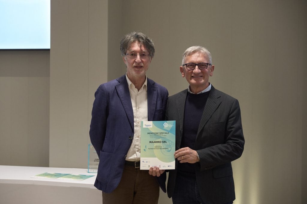 MAARMO ottiene la menzione di Confartigianato per un progetto di eco-design che valorizza scarti vitivinicoli e lapidei, trasformandoli in un termoarredo innovativo e multisensoriale. “UBRIAACO” rappresenta un esempio efficace di creatività applicata all’economia circolare, capace di unire estetica, funzionalità e riuso intelligente delle risorse territoriali.